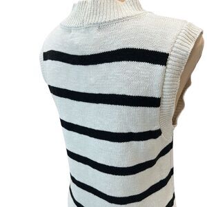 sanctuary striped sweater dress, life is easy dress, black white knit dress, cotton mini dress, sleeveless mock neck dress, modern preppy look, casual fall knitwear, cozy striped pullover dress, black and white stripe shift, transitional layering piece, office to weekend dress, breathable cotton knit, sanctuary mini dress, ribbed collar dress, minimalist style outfit, capsule wardrobe knit