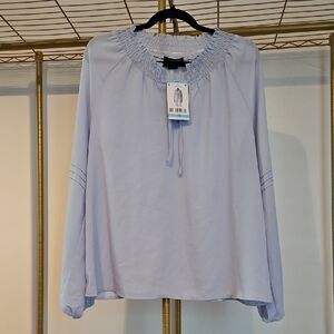 Sanctuary Light Blue Blouse, Smocked Necline, Long Sleeve, Sz L, NWT