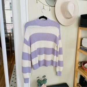 Sanctuary Lilac & White Stripe Mock Neck Sweater