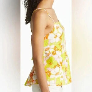 Sanctuary Linen Blend Floral Cami Top Large Multicolor Square Neck Cut Out NWT