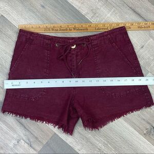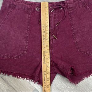 Sanctuary Linen Blend Raw Hem Shorts Maroon 26” Flat Front