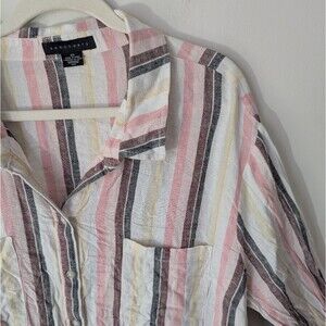 Sanctuary Linen Blend Striped button Down Lagenlook Shirt