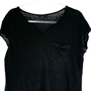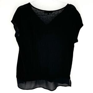 Sanctuary Linen Cap Sleeve Top with Contrast Trim Black Size Large