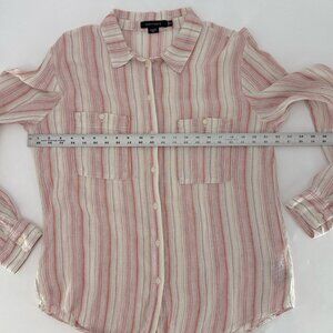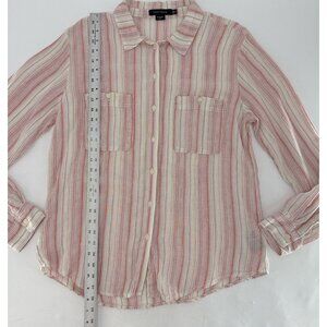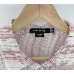 Sanctuary Linen Cotton Bld Striped Popover Blouse Roll Tab Slv Sz L Coastal Boho