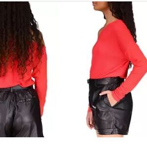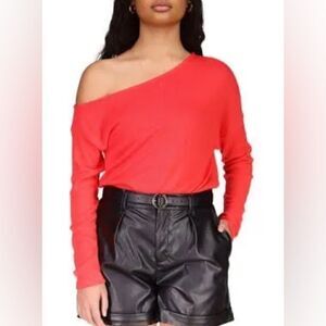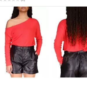 Sanctuary Love Sign One-Shoulder Top in Sunset Red, long sleeve Size X-Large