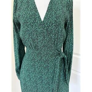 Sanctuary Knee Length Micro Leopard Printed Wrap Mini Green Dress