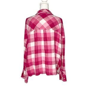 Sanctuary Mod Pink Plaid Buffalo Check Long Sleeve Boyfriend Button Front Shirt