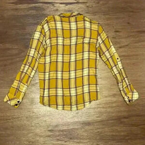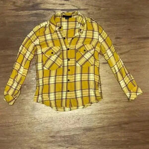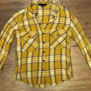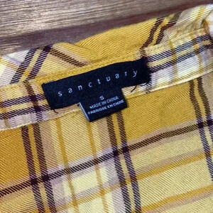 Sanctuary Mustard Yellow plum flannel top/shirt wmn small no flaws Snaps Rayon. This shirt is in great condition and does not show any signs of wear nor any flaws.