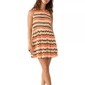 Sanctuary NWT Crochet Mini Dress Pleated Skirt Orange Black Yellow Size Large