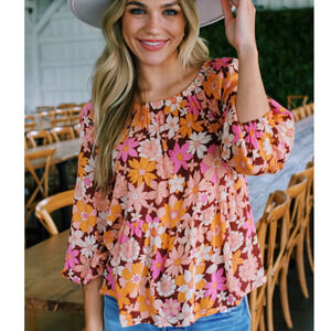 Sanctuary Spring Summer Dainty Floral Print Seashore Peasant Blouse