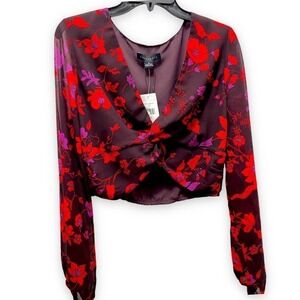 Sanctuary NWT Y2K Twist-Front Long Sleeve Chiffon Floral Print Crop Top Medium