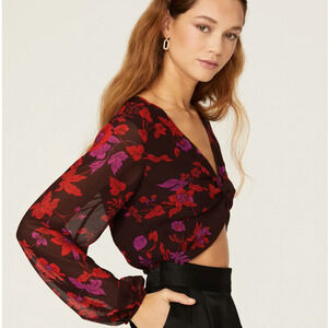 Sanctuary NWT Y2K Twist-Front Long Sleeve Chiffon Floral Print Crop Top Small