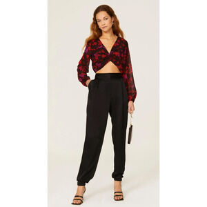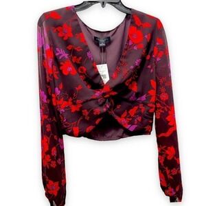 Sanctuary NWT Y2K Twist-Front Long Sleeve Chiffon Floral Print Crop Top Small