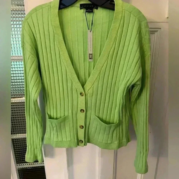 Sanctuary NWT women’s bright green cardigan pockets size medium