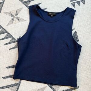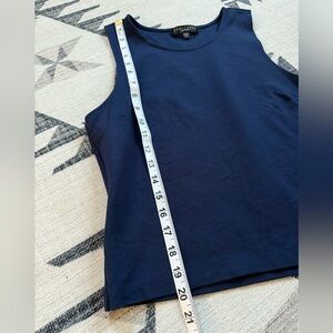 Chic dark blue tank top. Sleeveless design. Perfect for layering or wearing alone.
