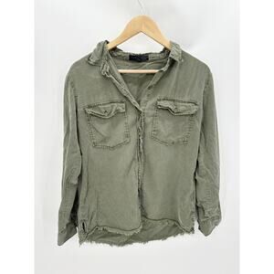 Sanctuary Olive Green Button Down Lyocell Shirt Long Sleeve Womens Size XS