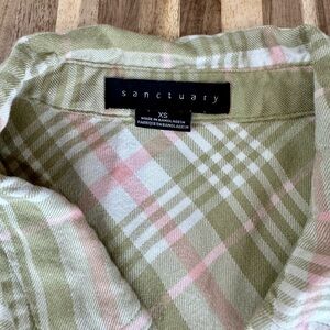 Stylish plaid shirt with olive and blush tones. Features a classic collar and button-up front.