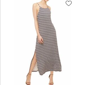 geometric print dress, summer midi dress, vacation style, strappy dress, boho chic, breathable fabric, resort wear, navy and white, comfy dress, casual midi, easy wear, sleeveless dress, minimalist look, everyday dress, spring and summer fashion