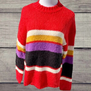 Sanctuary brand Party Striped Wool Blend Sweater Pullover size XL. Brand new with store tags only NWT. 48% acrylic, 32% nylon, 17% wool, 5% alpaca. Fuzzy, extremely textured- manufacturers design. cozy staple. Multicolored stripes long sleeve.
