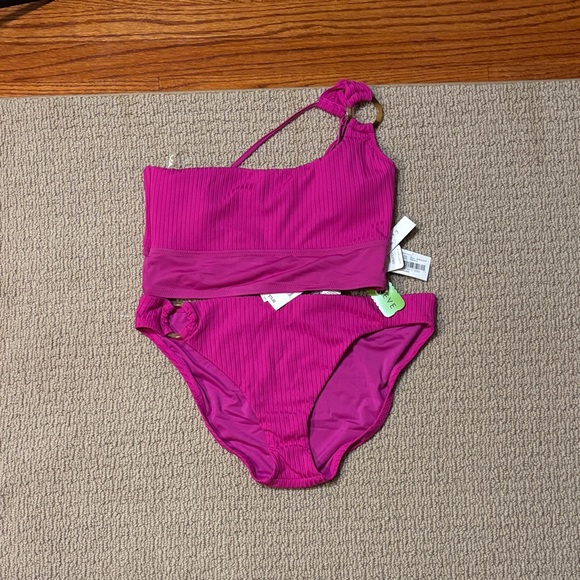 Stylish one-shoulder swimsuit by Sanctuary. Features a vibrant pink color. Perfect for a chic beach look.
