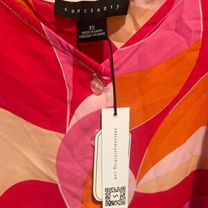 Sanctuary Pink Orange Abstract Wave Print Puff Sleeve Button Down Blouse XS