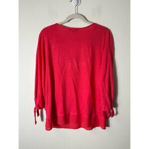 Sanctuary Pink V-Neck Tee Shirt Sz M. Long Sleeve with Ties on Sleeves