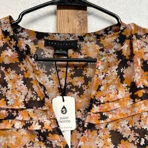 Sanctuary Pintuck Long Sleeve Pullover V Neck Floral Blouse in Harvest Size S