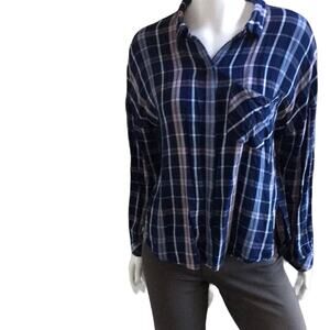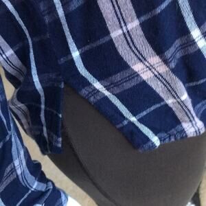 Sanctuary Plaid Button Down Shirt with Tie Back Blue Pink Women's Size Medium. Chest pocket. Hidden button front. Measurements: bust:23, length: 25
