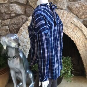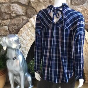 Sanctuary Plaid Button Down Shirt with Tie Back Blue Pink Women's Size Medium