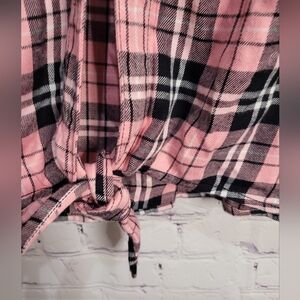Sanctuary Plaid Pink Long Sleeve Blouse Size Medium Tie Bottom