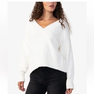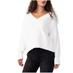 Sanctuary Plush Cream V Neck Dropped Shoulders Top pullover Sweater Size…