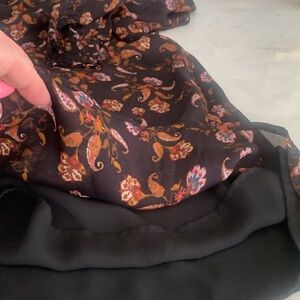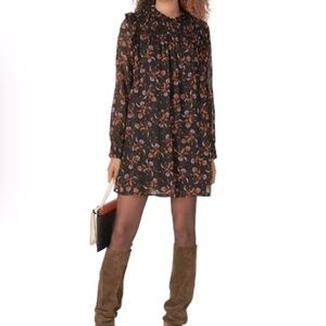 Fall blooms fall across this romantic Sanctuary dress topped with a Victorian-inspired collar and ruched cuffs.