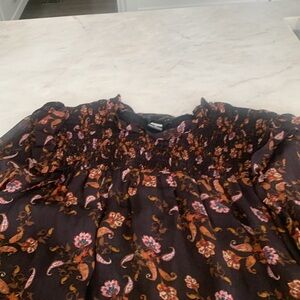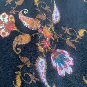 Black printed crepe (100% Rayone). Shift. Long sleeves. High neckline. Fully lined. 34" from shoulder to hemline. Imported.