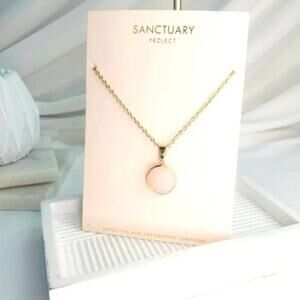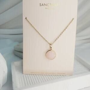 This brand new Sanctuary Project Rose Quartz necklace comes in its original packaging with tags intact. The piece, which is gold and pink, comes from a clean, smoke-free home.
