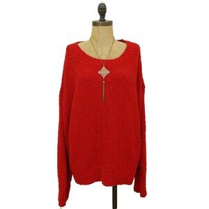 Sanctuary Pullover Teddy Sweater Top Size XL Popcorn Textured Red NWT B79