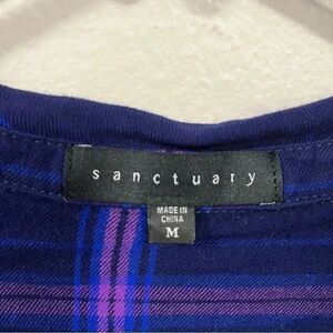 Sanctuary Purple Blue Button Down Flannel Shirt Ruffle Sleeves MEDIUM