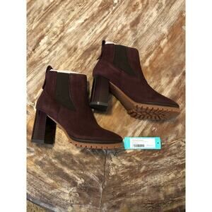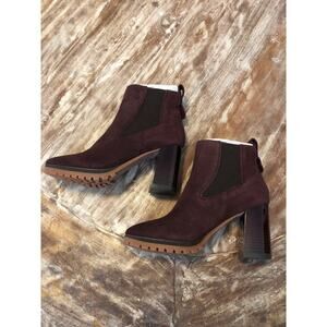 Sanctuary Ravish Booties Suede Block Heel Ankle Chelsea Boots Burgundy NWT Sz 7