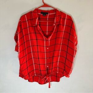 Sanctuary Red Borrego Plaid Oversized Button Down Boxy Blouse