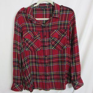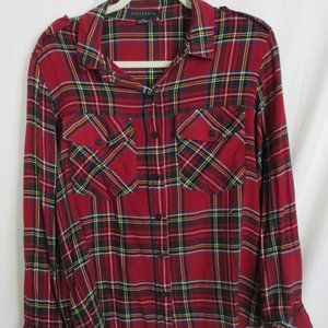 Sanctuary Red Plaid Button-Up Boyfriend Long Sleeve Snap Shirt Size Medium