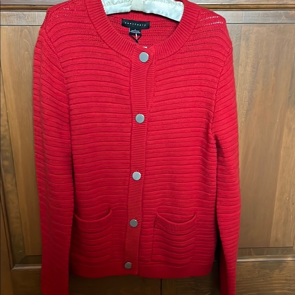 Sanctuary Red Ribbed Button-Front Cardigan