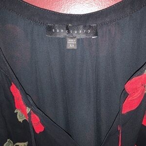 Sanctuary Womens XS Black Rose Print Cold Shoulder Top.