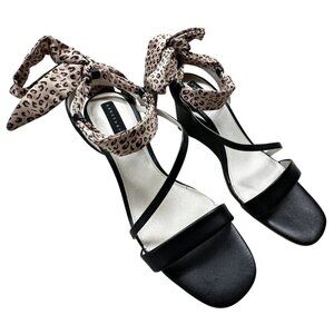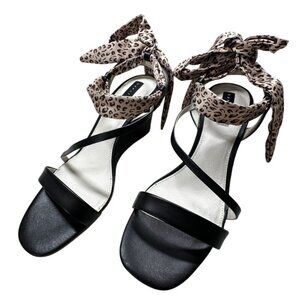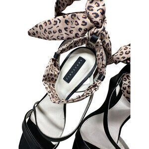 Sanctuary Sandals Whimsy Wedge Womens Size 11 Leopard Print Black Tie Strap NEW