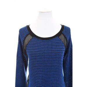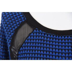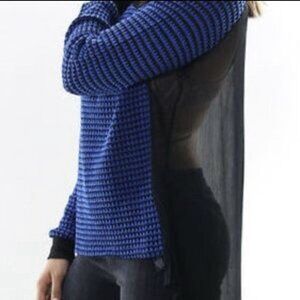 Sanctuary Sheer Back Mixed Blue Black Sweater High Low Tunic Womens Sz L