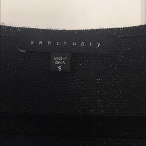 Adorable Sanctuary party dress! This black mini dress comes in a stretchy material with silver sparkle threading running through it. Has a tiny cut out detail around waist and at bottom of skirt. Side zipper closure. Purchased at Nordstrom.