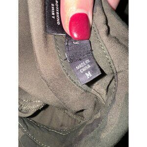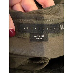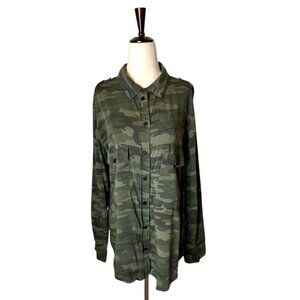 Sanctuary Shirt Women Medium Green Camo Collared Boyfriend Snap Button Down