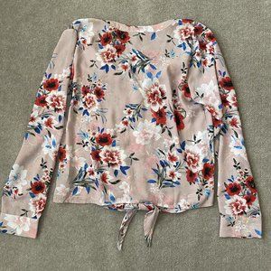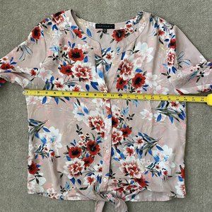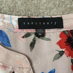 Sanctuary Shirt Womens Medium Light Pink Floral Lightweight Tie Waist Blouse