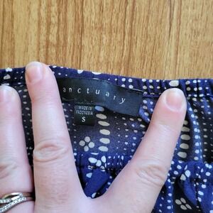Sanctuary womens shirt size small. Cobalt blue with white dotted stripe pattern, off shoulder style with 3/4 length poet sleeves. In excellent preowned condition.