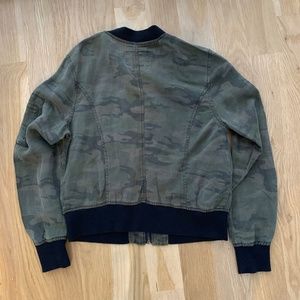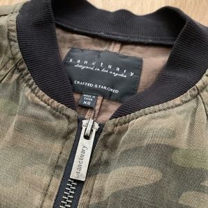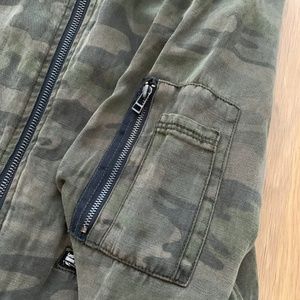 Spruce up your outwear collection with some edgy spunk this fall. From Sanctuary, this camo print bomber jacket lends a lightweight shell, ribbed knit trim and cuffs, zip front, dual zip hand pockets, and single sleeve zip pocket to elevate your ensemble.