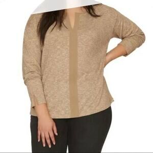 Sanctuary Sienna Tan Metallic Pullover V-Neck Top Blouse Size 1X