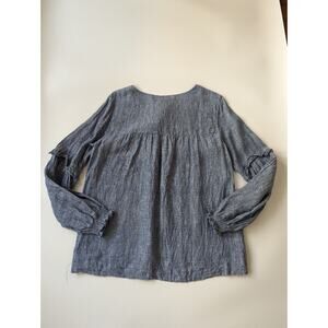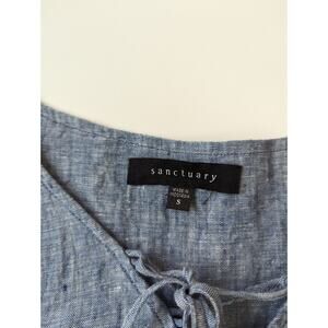Sanctuary Size Small Blue Peasant Long Sleeve Lace Up 100% Linen Shirt